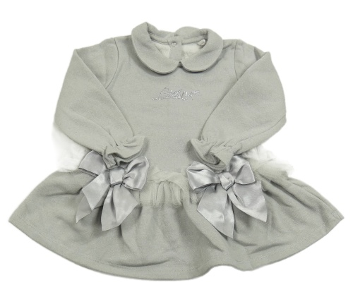 Šedé třpytivé teplákové šaty s mašlemi a límečkem