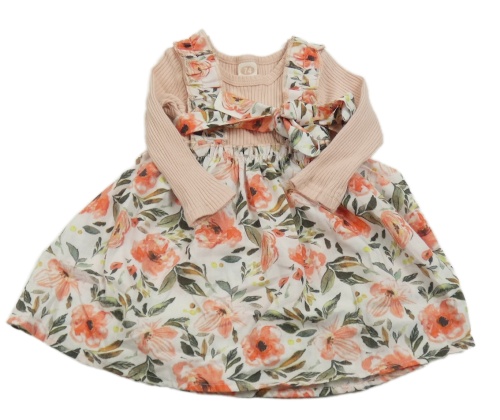 2Set - Bílo-pudrové šaty s kytičkami a kanýrky a žebrováním + zavazovací čelenka