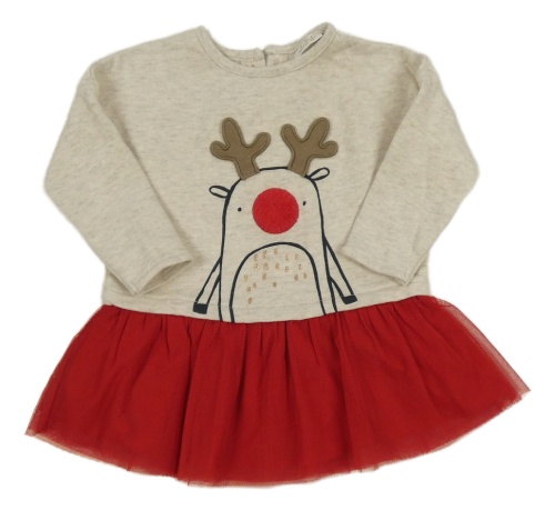 Světlebéžové melírované teplákové šaty s červenou tylovou sukní a sobem Next