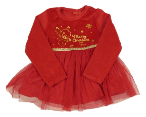 Červené plyšové šaty s Bambim a tylovou sukní Disney