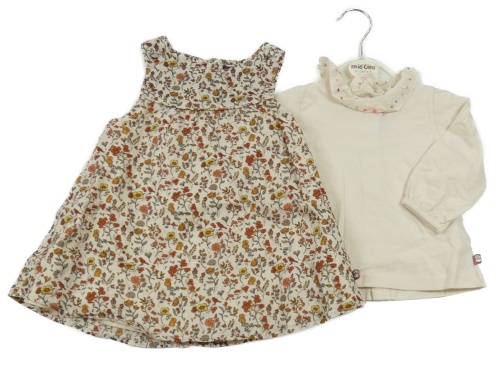Nové - 2set - Béžové šifonové šaty s kytičkami + triko Sergent Major