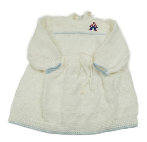 Bílo-modré vzorované pletené šaty s nášivkou