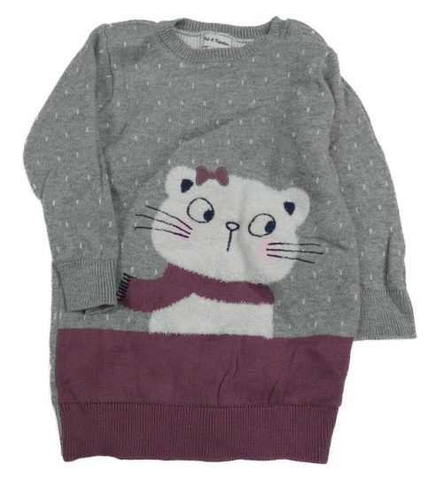 Šedo-fialové svetrové puntíkaté šaty s kočičkou