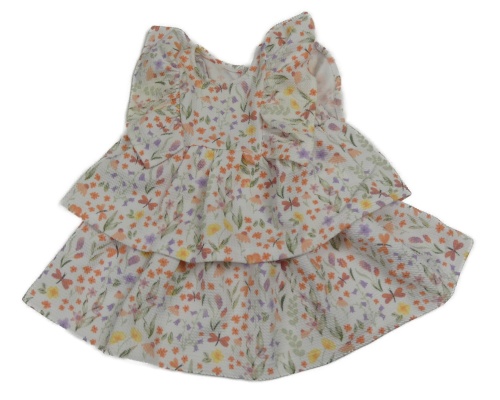 Bílé vzorované šaty s kytičkami a vážkami a volánky so cute
