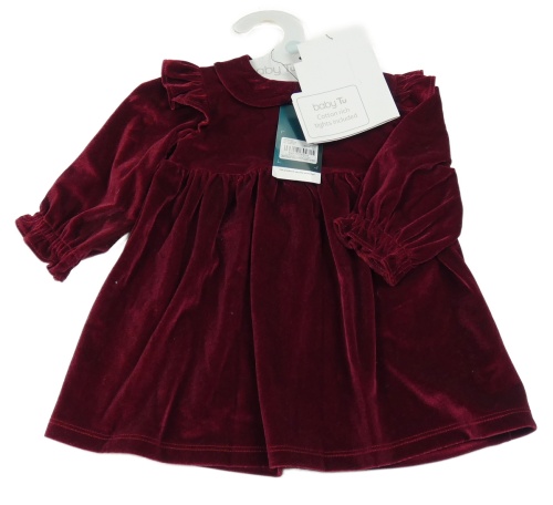 Nové - Vínové sametové šaty s límečkem a volánky Tu