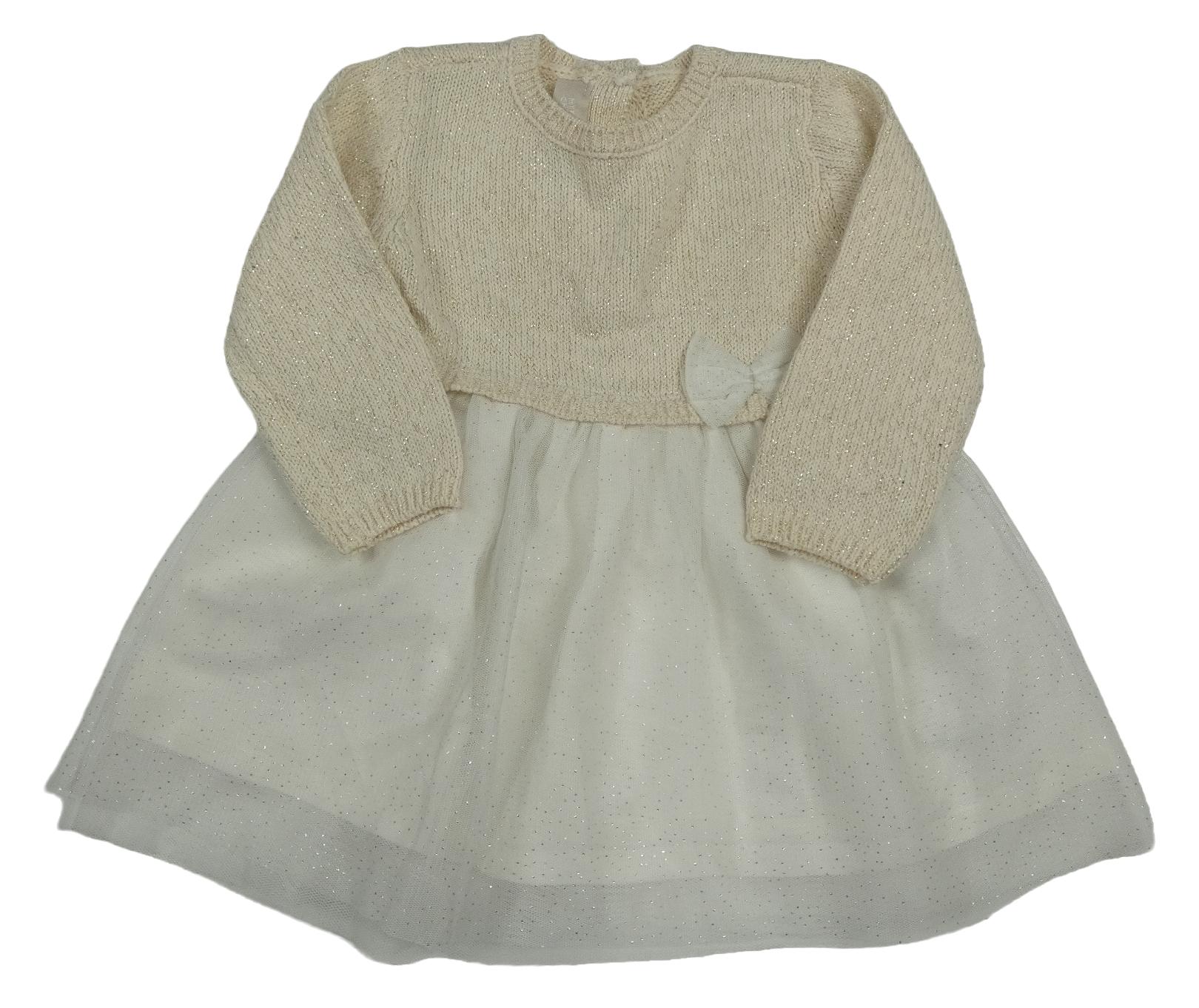 Béžovo-bílé svetrovo/tylové šaty s třpytkami a mašlí Chicco
