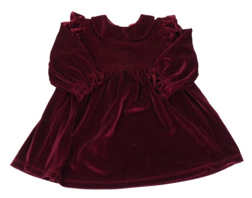 Vínové lesklé sametové šaty s volánky a límečkem Tu