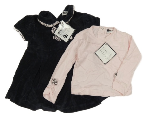 Nové - Světlerůžové triko s mašlemi + Tmavomodré manšestrové šaty s mašlí