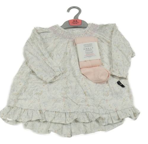 Nové - 2set - Bílé plátěné šaty s kytičkami + růžové punčocháče Dunnes