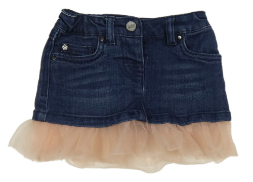 Tmavomodrá riflová sukně s růžovým tylovým volánkem