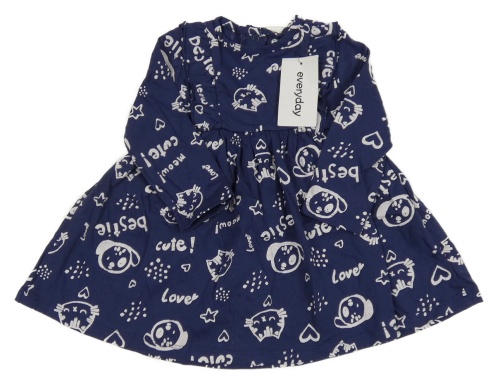 Nové - Tmavomodré bavlněné šaty s pejsky a nápisy