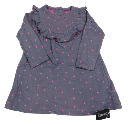 Nové - Šedo-neonově růžové puntíkaté úpletové šaty s volánkem Dunnes Stores