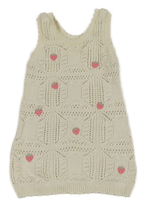 Smetanové ažurové pletené šaty s jahůdkami F&F