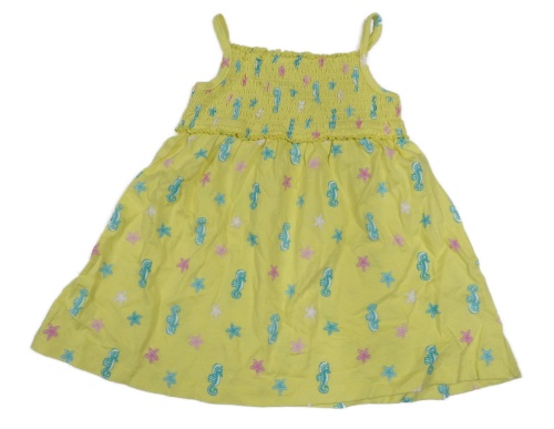 Žluté bavlněné šaty s mořskými koníky a hvězdicemi Topomini