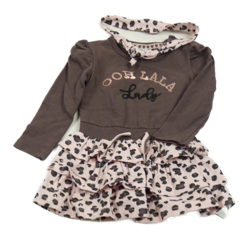 • Nové - 2set - Hnědo-světlerůžové teplákové šaty s nápisem a leopardím vzorem + čelenka