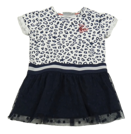 Bílo-tmavomodré vzorované šaty s tylovou sukní