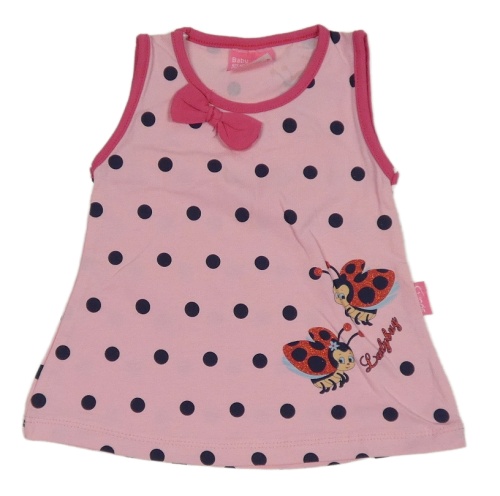 Světlerůžová puntíkovaná šatová tunika s beruškami a mašlí