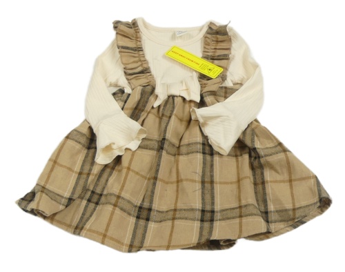 • Nové - Světlehnědo-černo-hnědo-smetanové kostkované žebrované šaty s mašličkou a volánky SHEIN