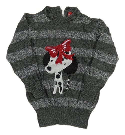 Tmavošedo-stříbrná pruhovaná svetrová tunika se psem Yd.