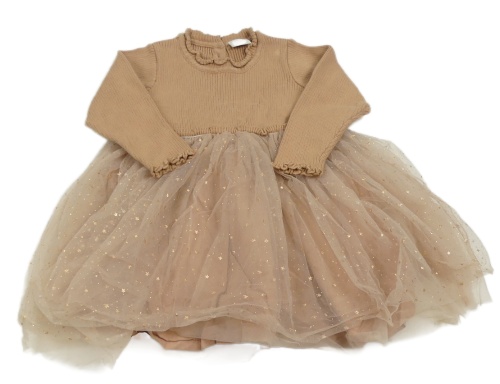 Hnědé žebrované úpletové šaty s tylovou sukní Next