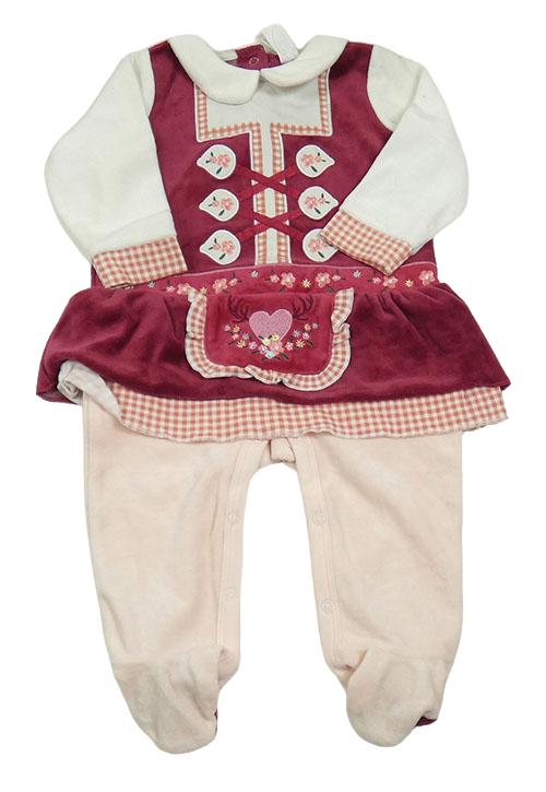 Vínovo-růžovo-bílé sametové šaty s květy a všitým overalem C&A