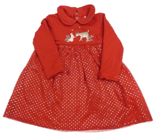 Červené teplákovo/tylové šaty se zvířaty a límčkem C&A