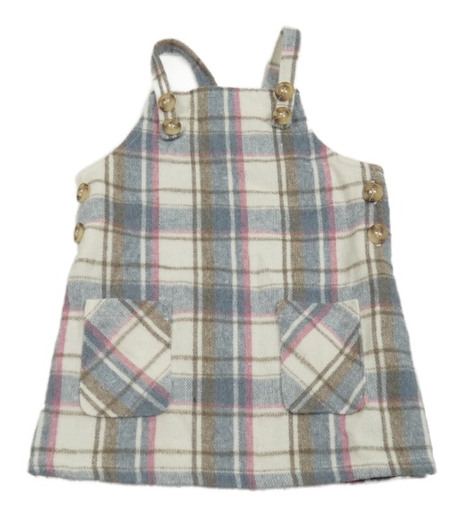 Smetanovo-modrošedo-hnědo-růžové kostkované vlněné šaty PRIMARK