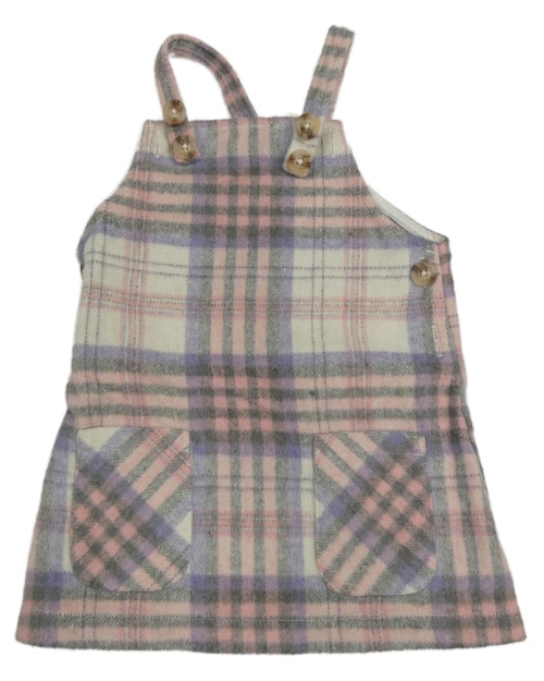 Béžovo-růžovo-šedé kostkované vlněné laclové šaty Primark