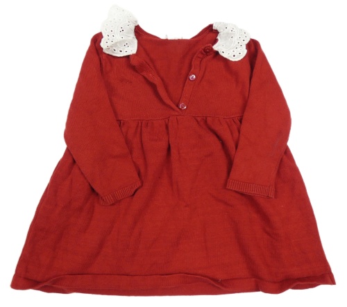 Rubínové pletené šaty s bílým madeirovým límečkem H&M