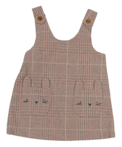 Šedo-světlerůžové kostkované vlněné šaty se zajíčky Next