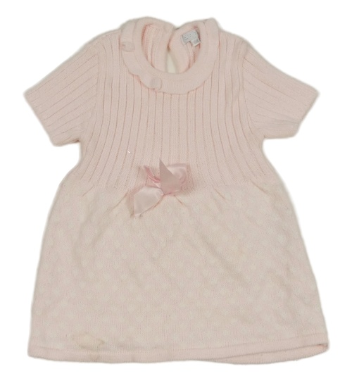 Světlerůžové pletené šaty se žebrováním a puntíky a mašlí a volánkem ZIP ZAP