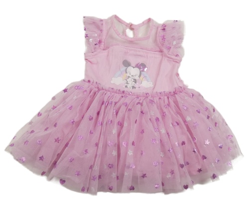 Světlerůžové tylové šaty s Minnie a srdíčky a hvězdičkami a volánky Disney
