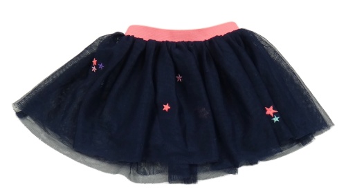 Tmavomodro-křiklavě korálová tylová sukně s hvězdičkami C&A