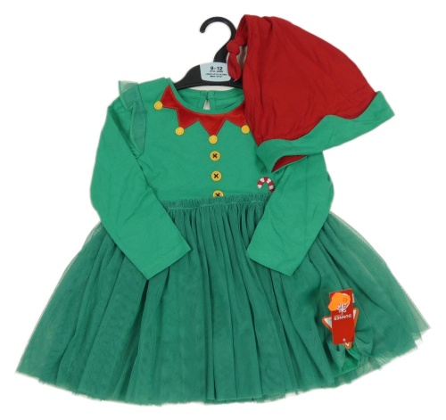 Nové - 2set - Zelené bavlněno/tylové šaty - elf + červená bavlněná čepice Dunnes