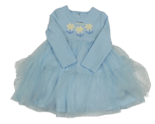Světlemodré žebrované šaty s květinami a tylovou sukní Primark