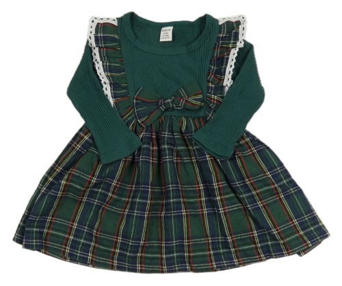 Tmavozeleno-kostkované šaty s mašlí Shein