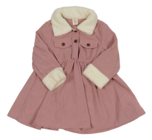 Starorůžové žebrované šaty s kožešinou Shein