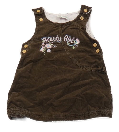 Tmavohnědé manšestrové podšité šaty s kytičkami a nápisem