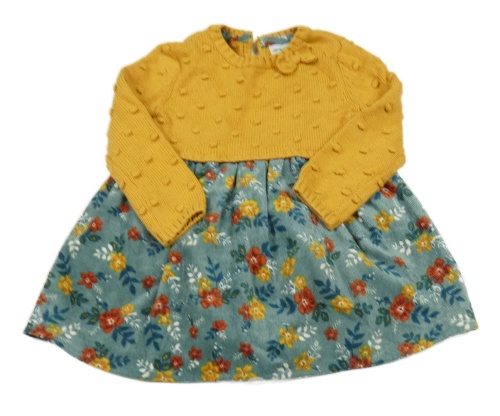 Okrovo-zelené pletené šaty se sametovou květovanou sukní
