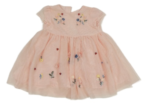 Růžové tylové šaty s výšivkami květů a berušek C&A