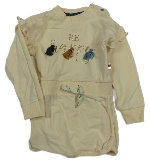 Smetanové teplákové šaty s nápisy a střapci a volánky Dirkje
