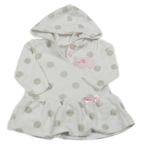 Smetanová puntíkatá šatová tunika se sloníkem a mašlí a kapucí