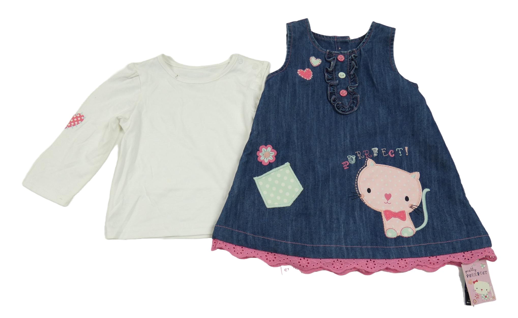 Nové - 2 set - bílé triko + riflové šaty s kočkou St. Bernard