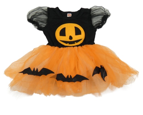 Černo-oranžové šaty s všitým body a dýní a netopýry