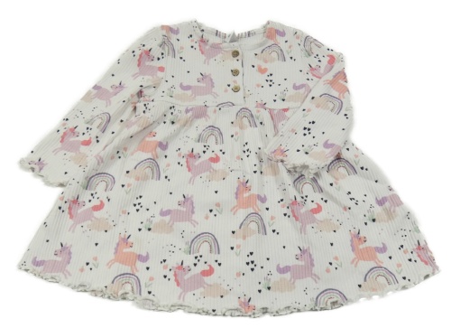 Bílé žebrované bavlněné šaty s duhami a jednorožci Topomini