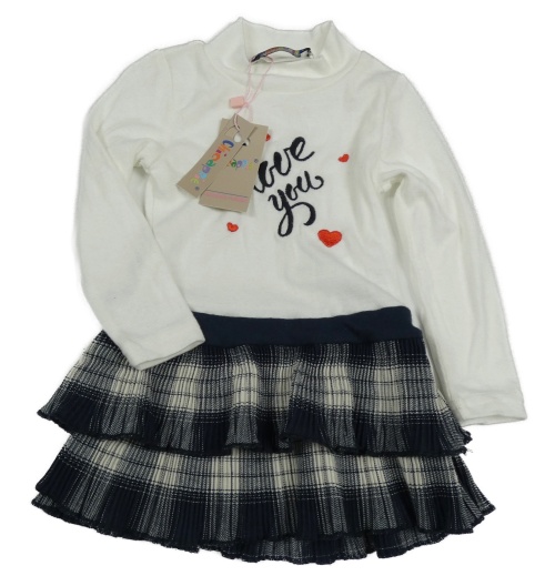 Nové - smetanovo-tmavomodré šaty s nápisem