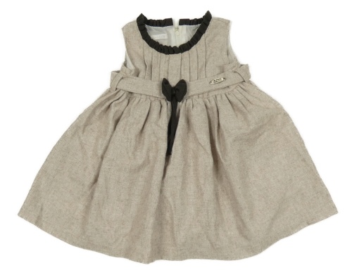 Béžové melírované bavlněné šaty s kávovým volánkem