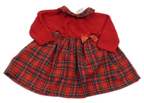 Červeno-zelené svetrové šaty s kostkovanou sukní
