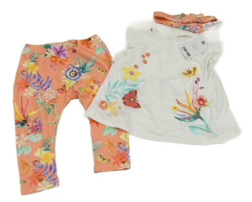 3set - Bílé tričko s kytičkami + legíny + čelenka Next
