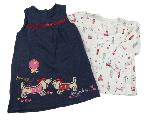 2Set - Tmavomodré melírované teplákové šaty s jezevčíky + bílé triko s obrázky - Londýn George